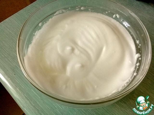 В три приема добавляем белки, аккуратно перемешивая. -