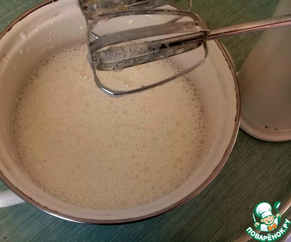 Вливаем молоко и масло, взбиваем.