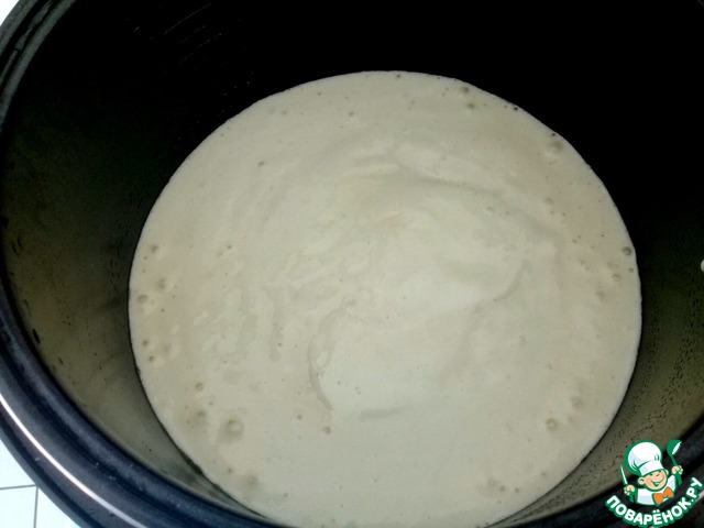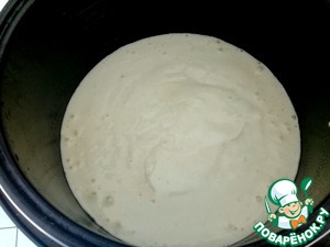 Чашку мультиварки влить тесто. Готовить при режиме "Выпечка" 60 минут.