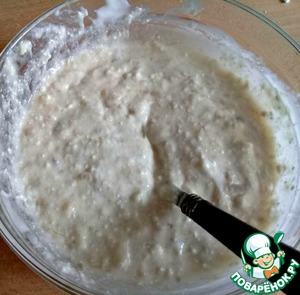Всыпаем просеянную муку с разрыхлителем, перемешиваем.