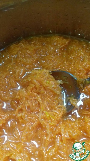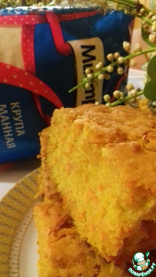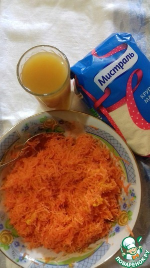 Морковь натереть на мелкой терке. С помощью той же терки снять с апельсина цедру. Добавить сахар, перемешать. Отдельно манку смешать с соком. Все отложить в сторону на минут 30-40. |