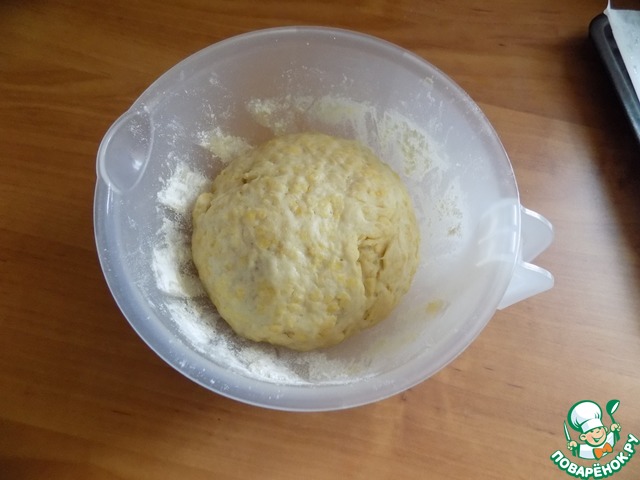 Руки смазала немного маслом и скатала из теста шар. Тесто к рукам не пристаёт. Податливое и эластичное. Ставим опять в тёплое место минут на 15-20.