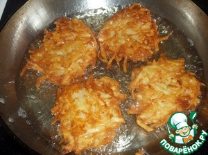 Обжариваем драники с обеих сторон до золотистого цвета на среднем огне.