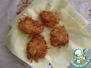 Обжаренные драники выкладываем на бумажные салфетки, убирая лишнее масло.