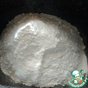 Налить масло растительное и воду, поставить на режим "Тесто".