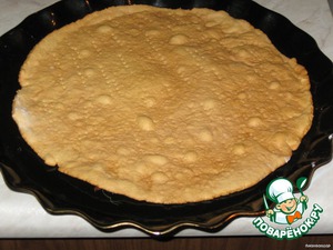 Потом достаем и выпекаем 6 -7 коржей. Все зависит от диаметра сковородки. Когда я первый раз делал почему-то (уже не помню), тесто вышло очень жидким. Тогда я добавил муки. Но, надеюсь, у тех, кто захочет испечь такой торт, все получится. На самом деле он не сложный в изготовлении.