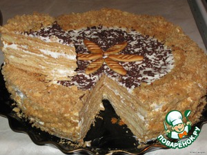 Получилось очень вкусно!!! Коржи пропитывал по очереди, один сметанным кремом, другой сгущенка и масло.