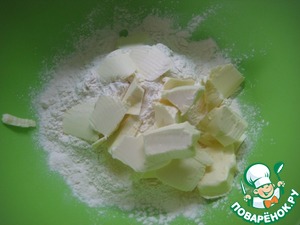 Для теста: в миске соединить муку и щепотку соли. Добавить кусочки охлажденного сливочного масла и перетереть все руками в крошку.