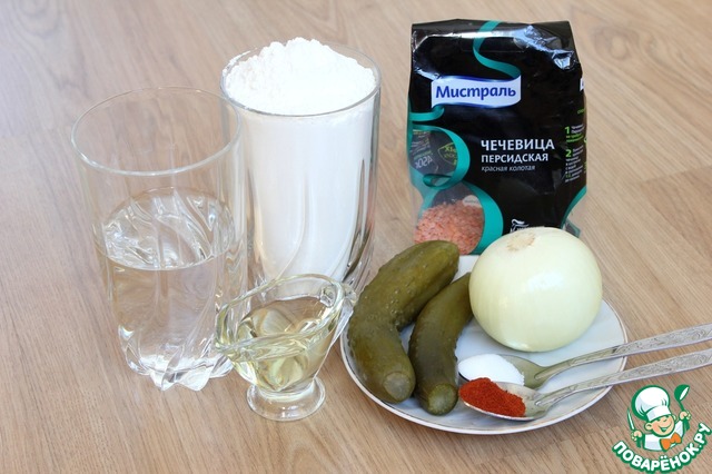 Ингредиенты для «Вареники с чечевицей и соленым огурцом»: