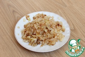 Лук мелко режу и обжариваю на сковороде с добавлением растительного масла до золотистого цвета.