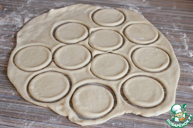 На каждый кружочек выкладываю по 1/2 ч. л. начинки (примерно).