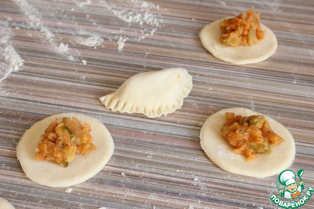 Рецепт «Вареники с чечевицей и соленым огурцом»: