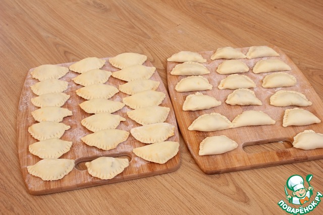 Защепляю края вареника и слегка прижимаю их вилкой. -