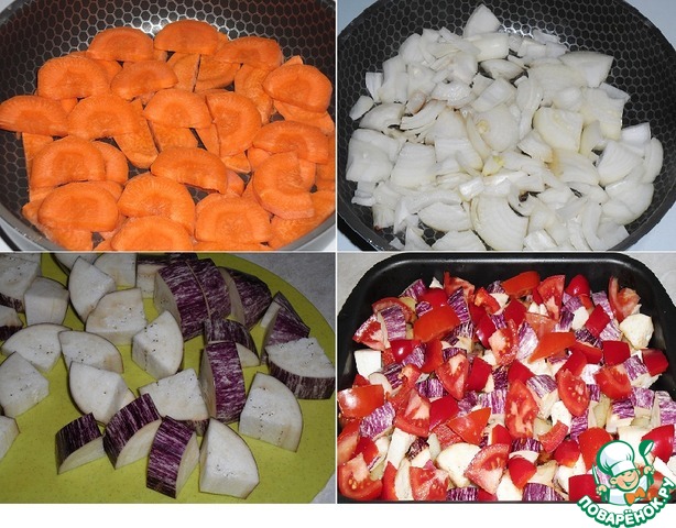 Чтобы не пришлось потом перемешивать при запекание овощи, немного подготовим их заранее.