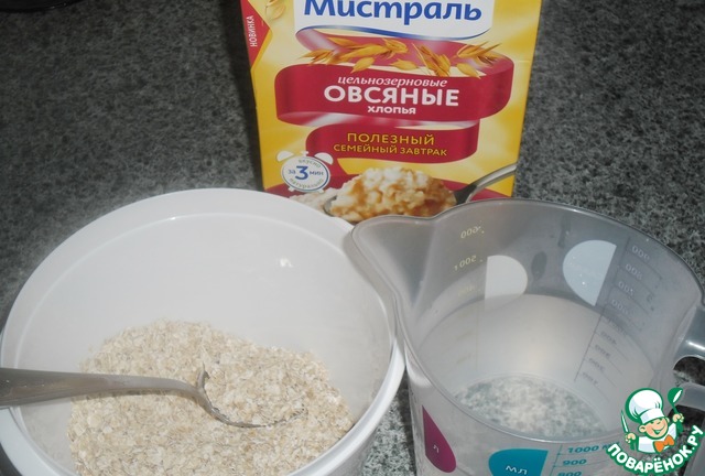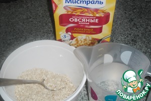 Предварительно замочить хлопья, имбирный порошок и отруби в горячей воде (40-50 градусов), для набухания.