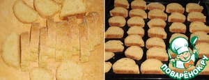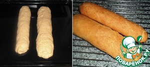 Нарезать батончики на кусочки толщиной с палец. Разложить на сухой противень, выпекать 15 минут с одной стороны, перевернуть и досушить до кондиции.