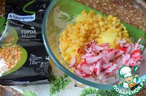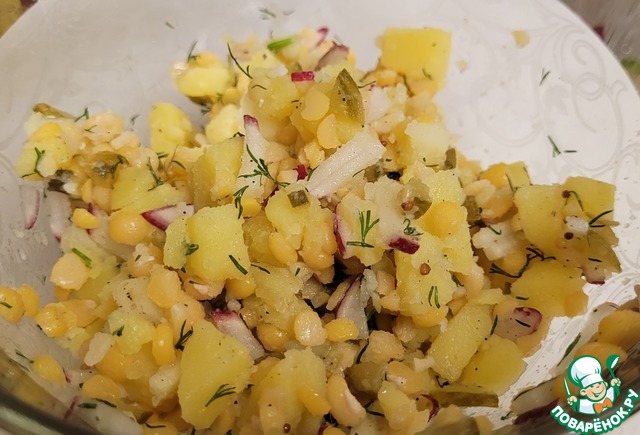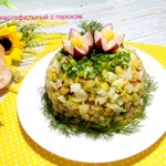 В нашей семье очень любимы салаты с картофелем, ведь он сочетается со многими продуктами, всегда вкусно и сытно. Сегодня - новое для нас - картофель с отварным горохом. Оказалось очень вкусно, пикантно и остренько. Угощайтесь.