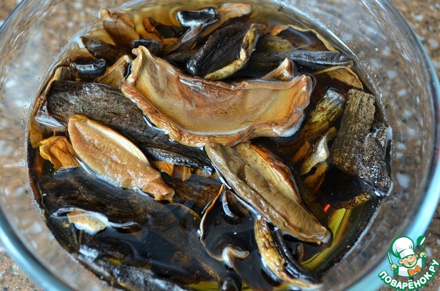 - Грибы (сухие подосиновики и белые) — 1 горст.