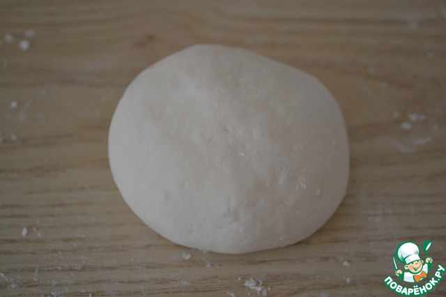 Готовим тесто: крахмал и 1 ч. л. соли смешиваем, добавляем 180 гр кипятка и 1 ст. л. растительного масла. Замешиваем тесто. Если тесто очень липнет, подсыпаем немного крахмала. Тесто получается очень нежное и работать с ним нужно аккуратно. Тесто заворачиваем в пищевую пленку.