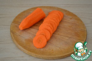 Крупную морковь чистим и нарезаем кружочками.