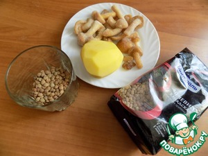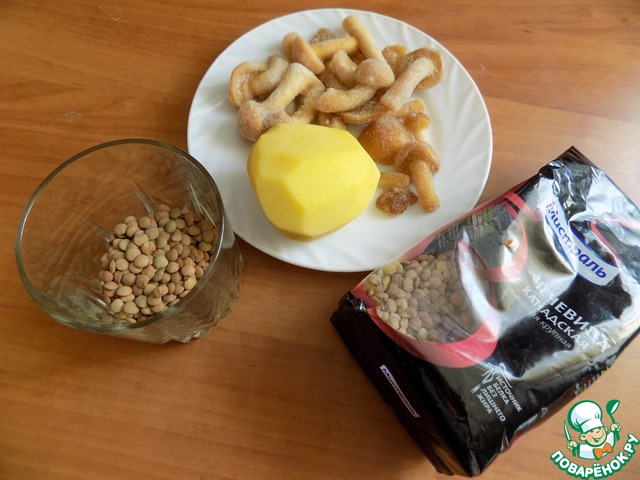 • Для щей я выбрала чечевицу канадская ТМ МИСТРАЛЬ. Ставим кастрюлю с водой на плиту, доводим до кипения и выкладываем чечевицу. Варим минут 15 и отправляем к ней немного грибов. Я взяла опята замороженные. Они есть всегда в супермаркетах. Минут через 15 выкладываем картофель порезанный кубиком небольшим.