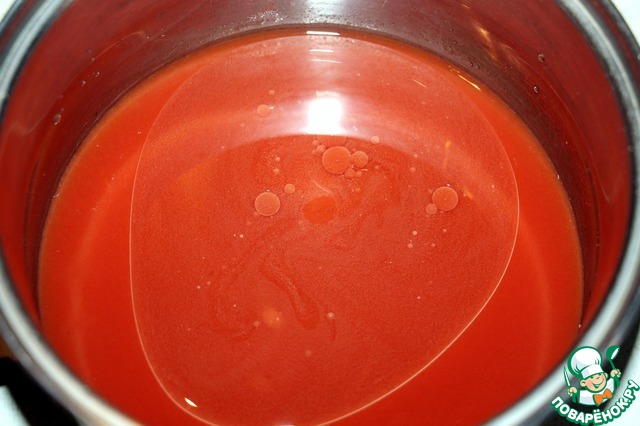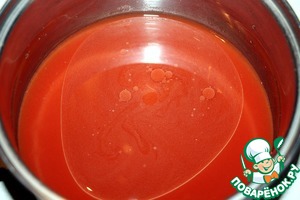 Готовим тесто. Смешать воду с солью, растительным маслом и томатной пастой.