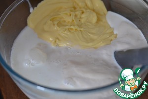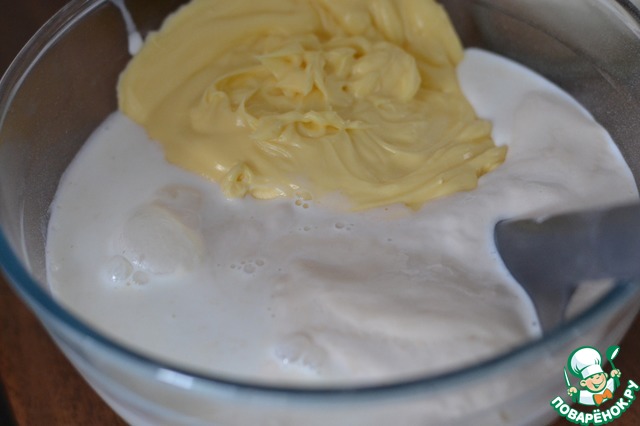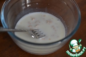 Смешать 50гр. теплого молока, дрожжи и сахар.