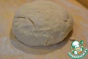 Готовое тесто выкладываем на разделочную доску, которую слегка присыпать мукой.
