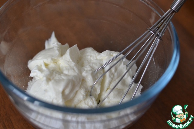 Творог взбить с яйцом и сахарной пудрой.