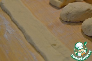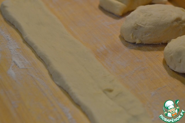 Каждый кусочек теста расскатать на полоску 5х35см.