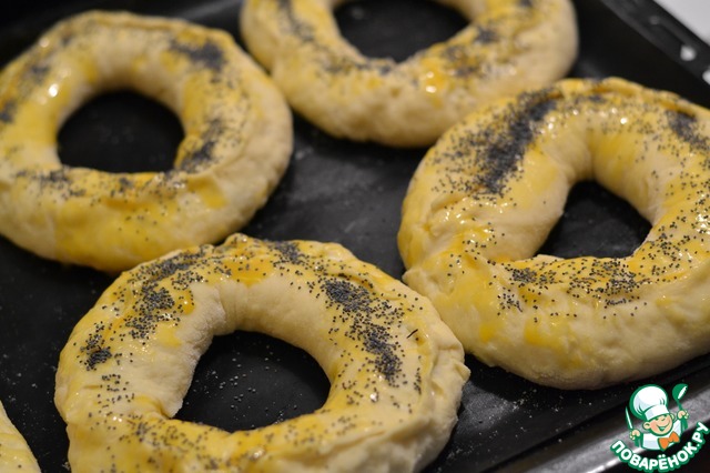 Смазать веночки взбитым яйцом, присыпать маком.