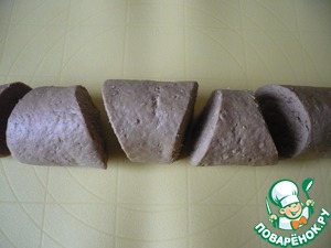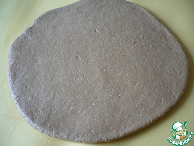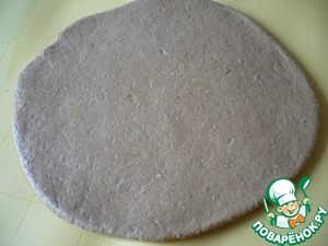 Перед выпечкой достать миску из холодильника, слегка обмять тесто и отделить половину для разделки, а затем также поступить с другой половиной теста.