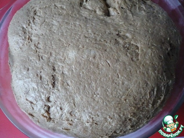 Тесто сложить конвертом, перевернуть швом вниз и положить в миску смазанную растительным маслом, затянуть пищевой пленкой и поставить в холодильник на 12-24 часа.