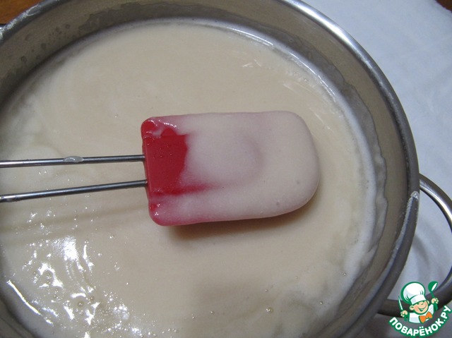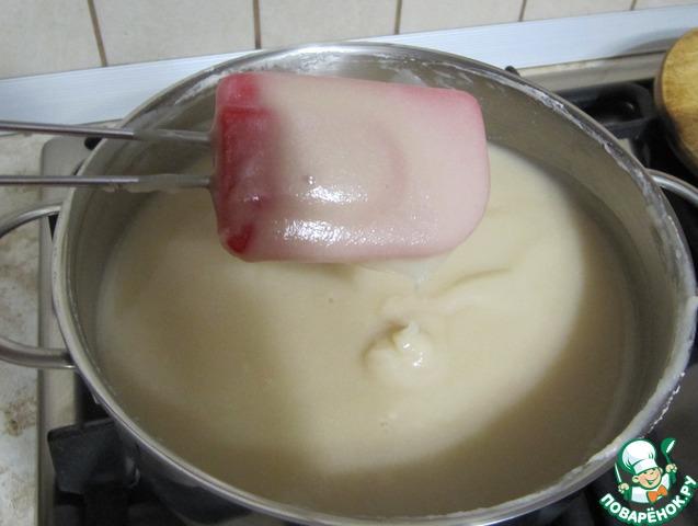 При нагревании смесь становится очень жидкой, буквально льется с лопатки.