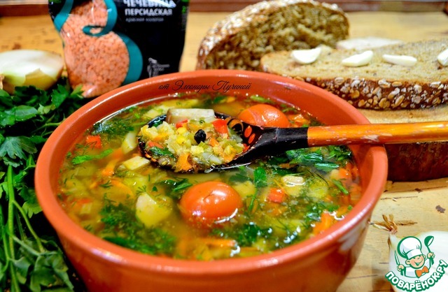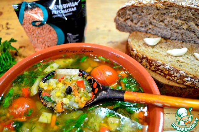 Далее отправляем нашу любимую чечевицу продукции ТМ Мистраль красная Персидская, она варится 10-15мин. -