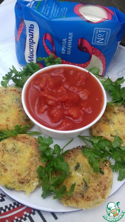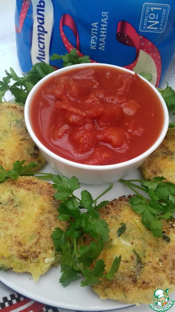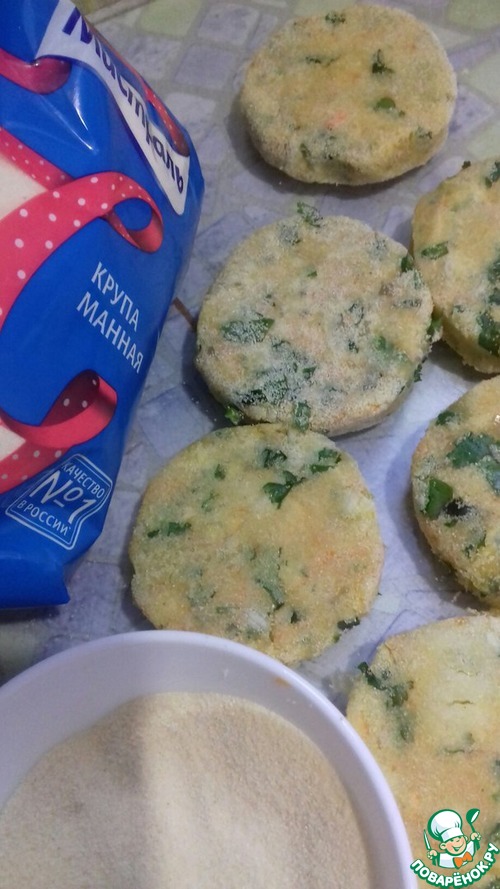 Сформировать небольшие котлетки, обвалять в манной крупе и обжарить на среднем огне до румяной корочки.
