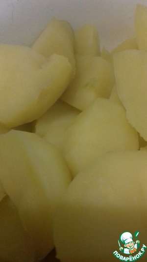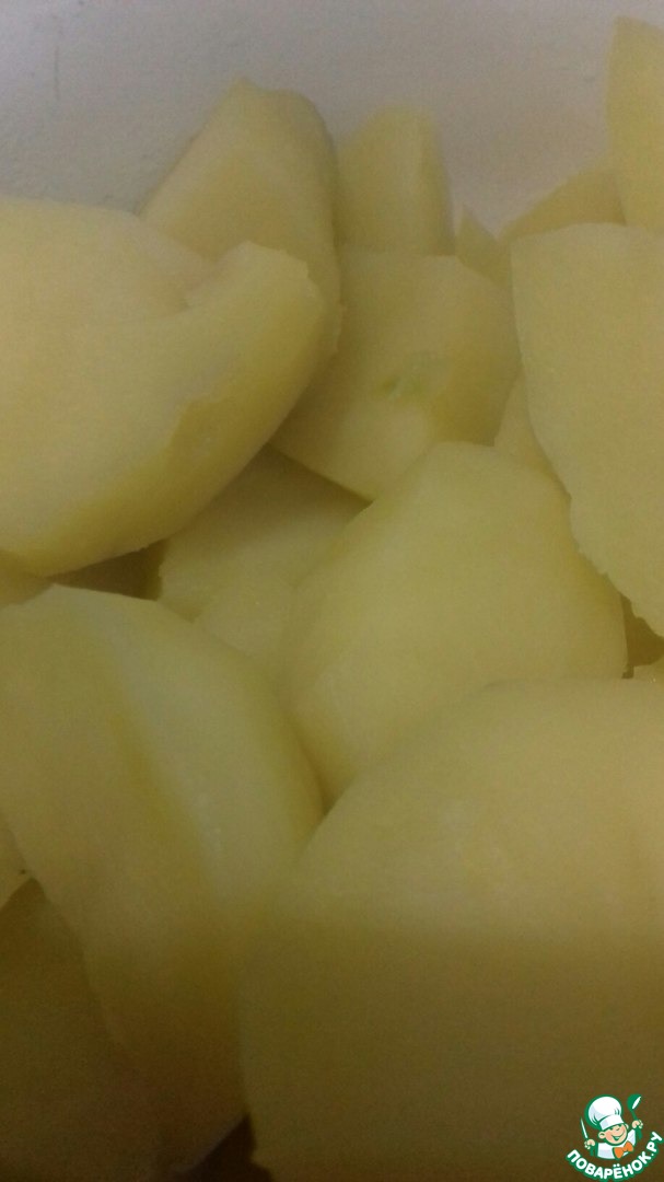 Картофель отварить, слить, размять в пюре. Добавить муку и отложить остывать.