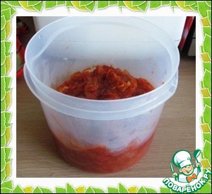 слой маринада, слой горячей рыбы, слой маринада, слой рыбы, последний слой маринада -