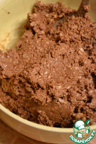 Для крема измельчить блендером семечки, курагу и какао, добавив немного воды, чтобы было не слишком густо.