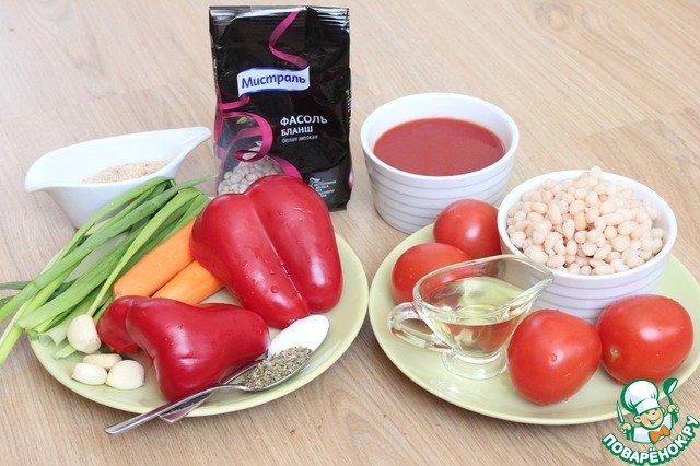 Для приготовления блюда нужна заранее отваренная до готовности белая фасоль.