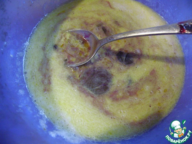 Варенье берем такое, чтобы тесто приобрело серый цвет.