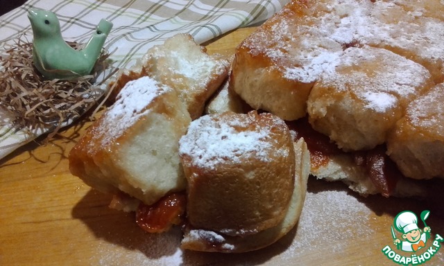 • Готовый пирог не нужно резать ножом а просто отламывать шарики (булочки) друг от друга.