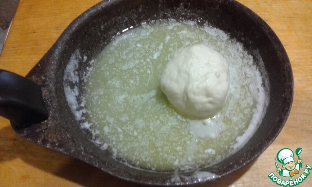 Таким образом, лепешка должна стать основанием пирога, а шарики верхом.