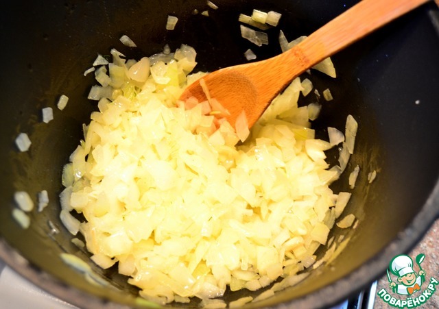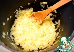 В казане обжариваем лук порезанный кубиком