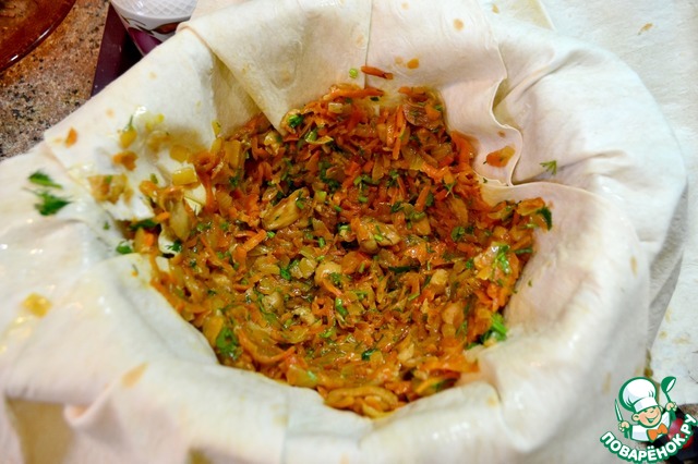 На дно выложить грибную начинку...