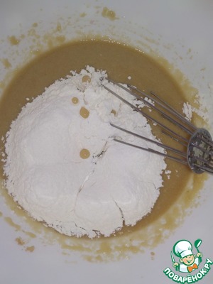 По истечении времени добавить разрыхлитель и муку.