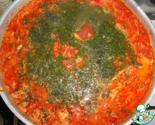 Добавить измельченную зелень (лук, укроп, петрушку по вкусу) и выключить, настоять 10-15 минут.