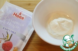 Взбейте сметану с сахарной пудрой. Я использую сахарную пудру ТМ HAAS.