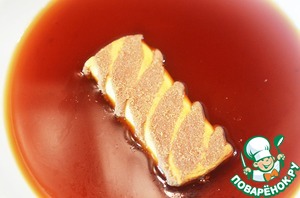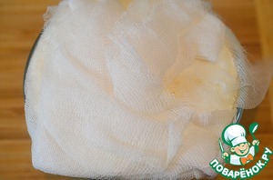 Заверните края ткани и поставьте груз. Через 2 часа уберите в холодильник часов на 8.