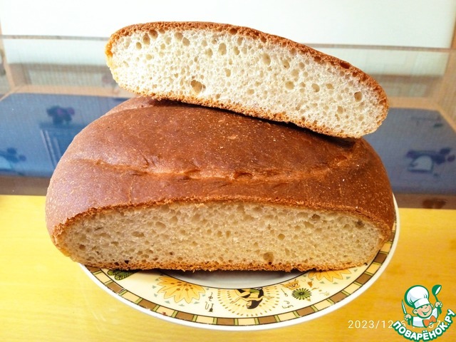 30 минут выпекать под крышкой при температуре 200 градусов, затем выпекать оставшиеся 30 минут, сняв крышку и поставив рядом небольшую миску с кипятком для испарения пара.